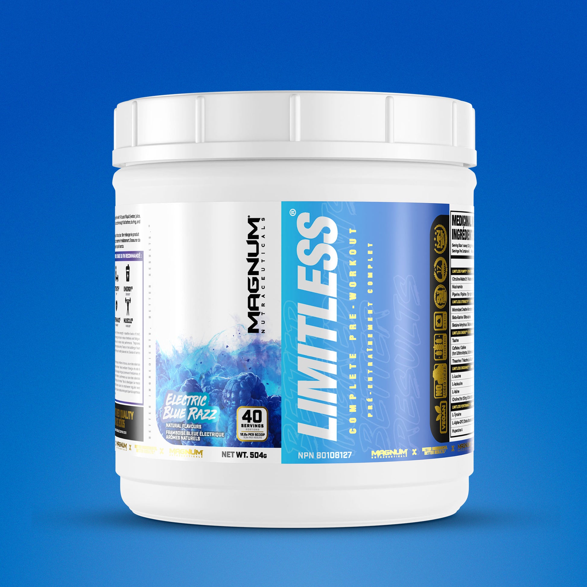 Magnum Limitless is a fully-loaded, all-in-one pre-workout formula to deliver everything you need to push through your workouts so you can achieve results like never before. Complete with a brand new flavoring system, Limitless provides over 20 grams of scientifically proven, active ingredients so you can reach your goals and unleash your true potential.